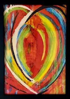 Mindre værker Mindre malerier og mixed media Betegnelsen mixed media kan inkludere collage (både synligt og som bund af forskellige materialer), crayons i olie, kridt mm, gel prints samt tusch Lille buket Klovn Joker Cirkushest Hjerte